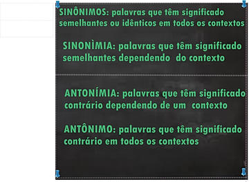 ANTONÍMIA: segue a mesma ideia da sinonímia,palavras em que dependendo do contexto têm sentido ao contrários das outras.